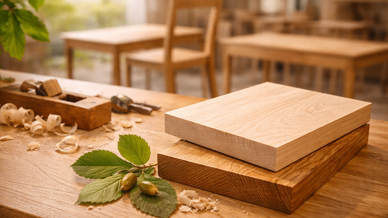 タモ材・オーク材の特性と魅力を解説し、長く使える家具に適した理由を分かりやすく紹介します。